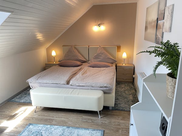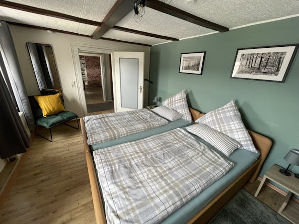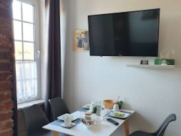 The double rooms are equipped with fully equipped pantry kitchens and dining areas. The equipment includes box spring beds, additional blankets and pillows, satellite TV, WLAN Internet access, a hair dryer, a bathroom towel dryer, a refrigerator, a coffee pad machine, and a kettle.