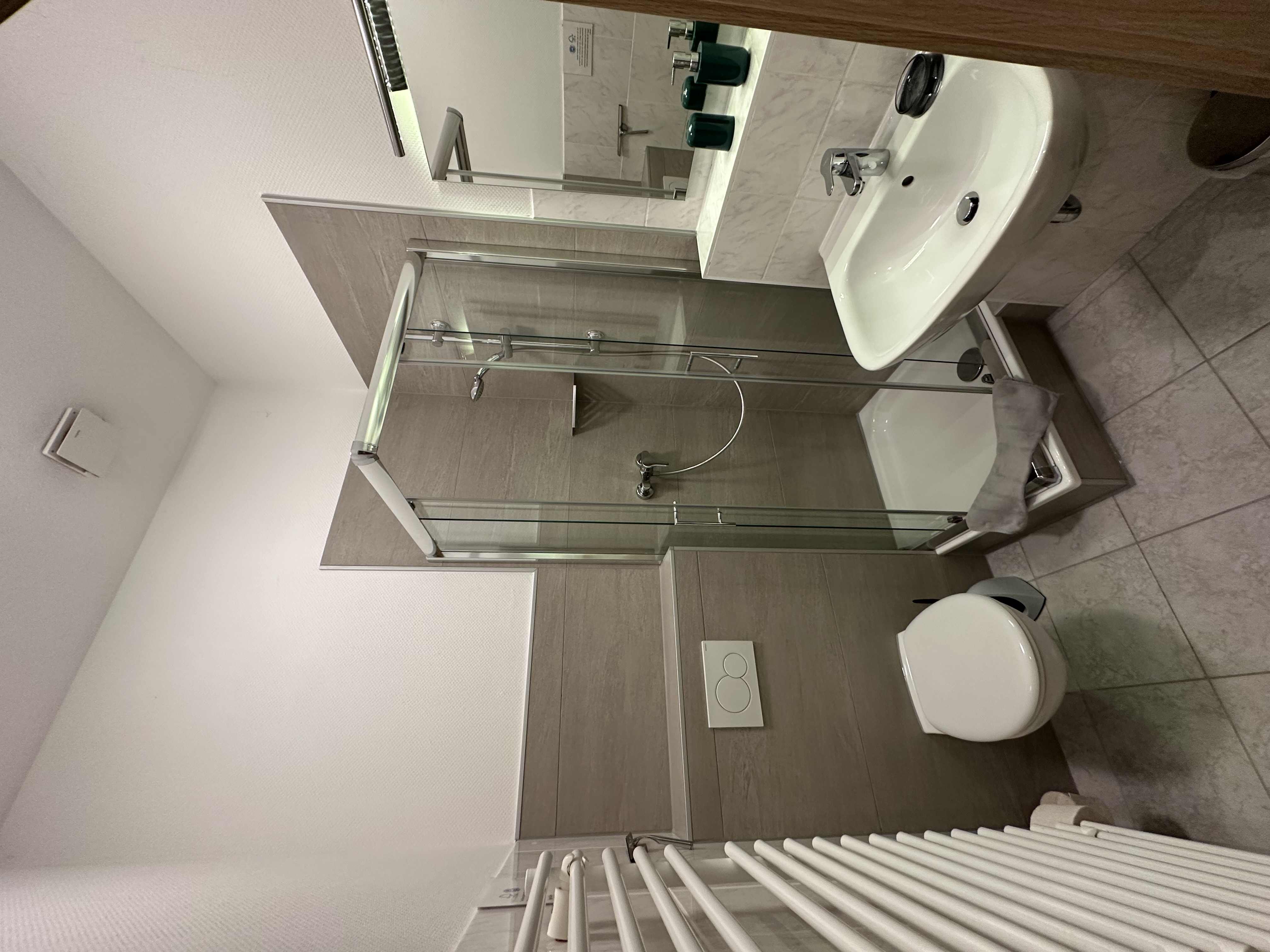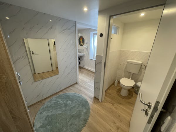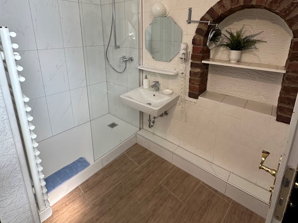 Our double rooms on the first floor are new and modern and have their own bathroom with shower and toilet.